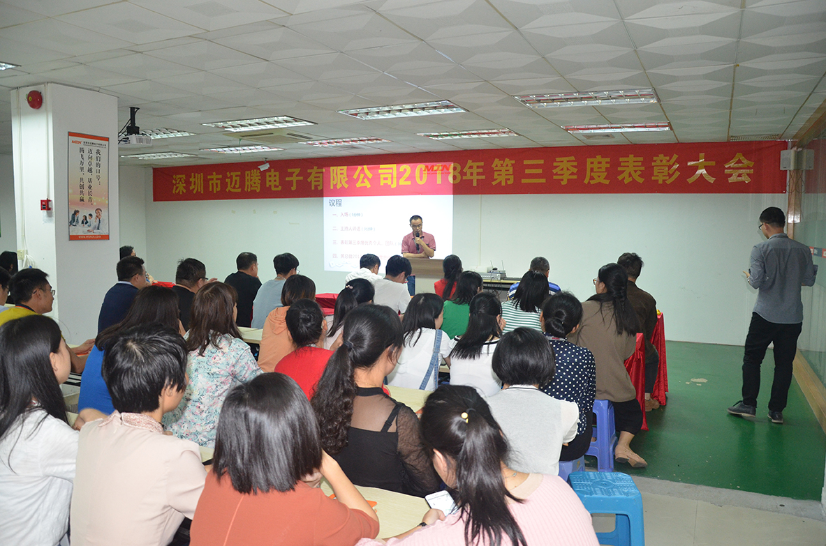 11月14日,好体育手机版网页入口电子2018年第三季度表彰大会在公司培训室隆重举行,深圳全体员工参加了此次会议。本次大会简要总结第三季度工作,并对优秀团队进行表彰,同时强调第四季度工作重点。